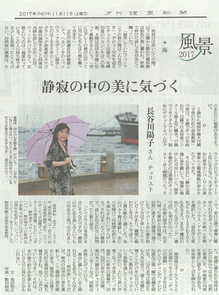2017年11月11日(土)の読売新聞夕刊に「風景」の記事が、また同14日(火)に産経ニュースにインタビュー記事が掲載されました。
