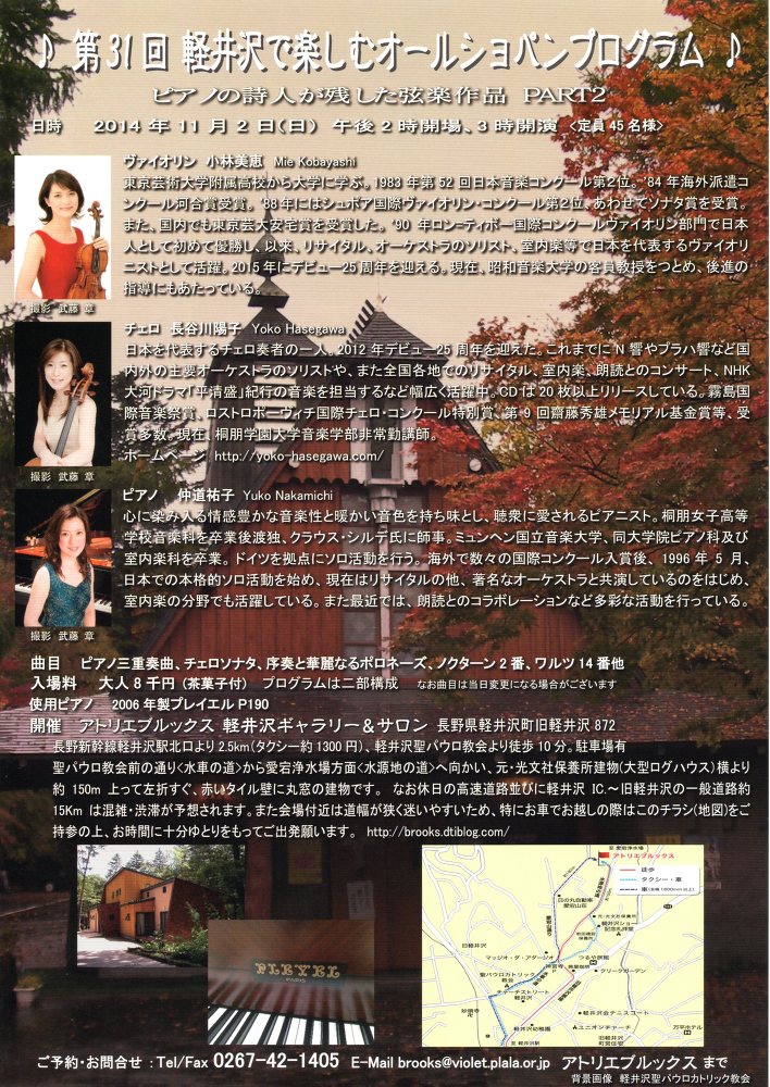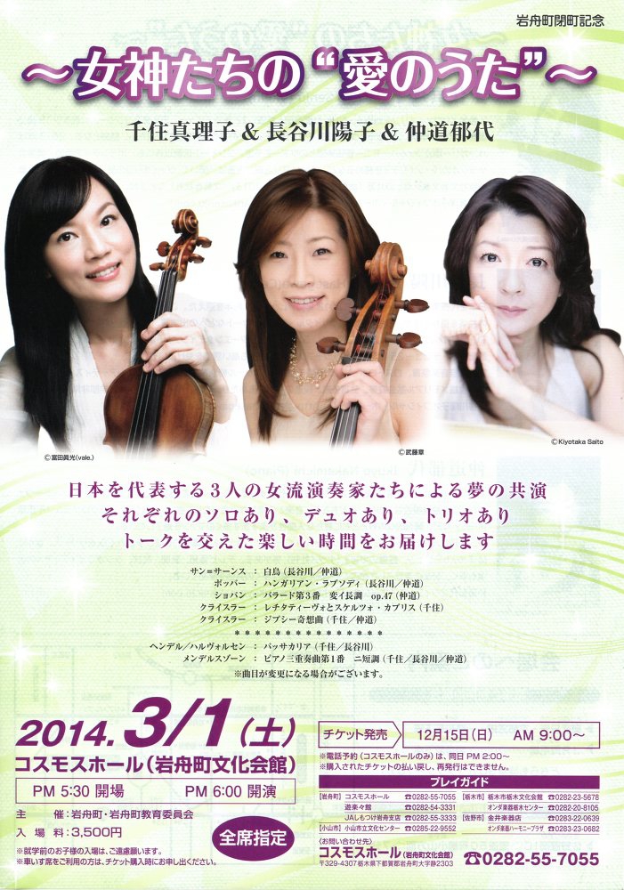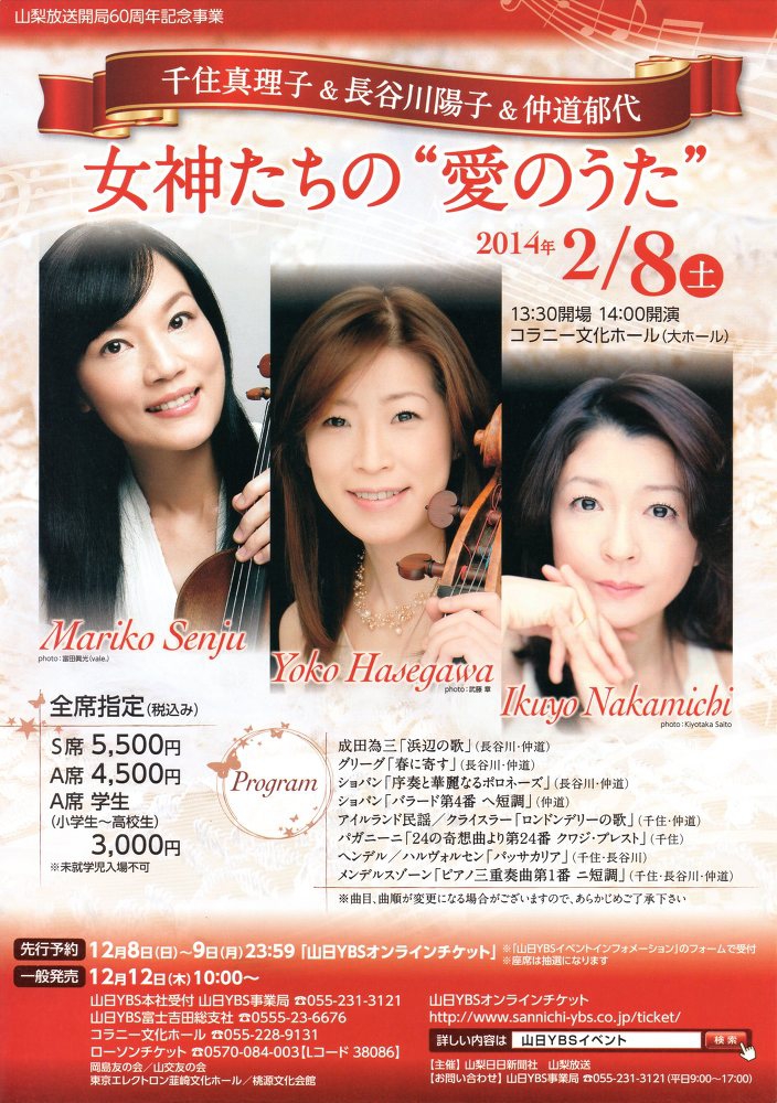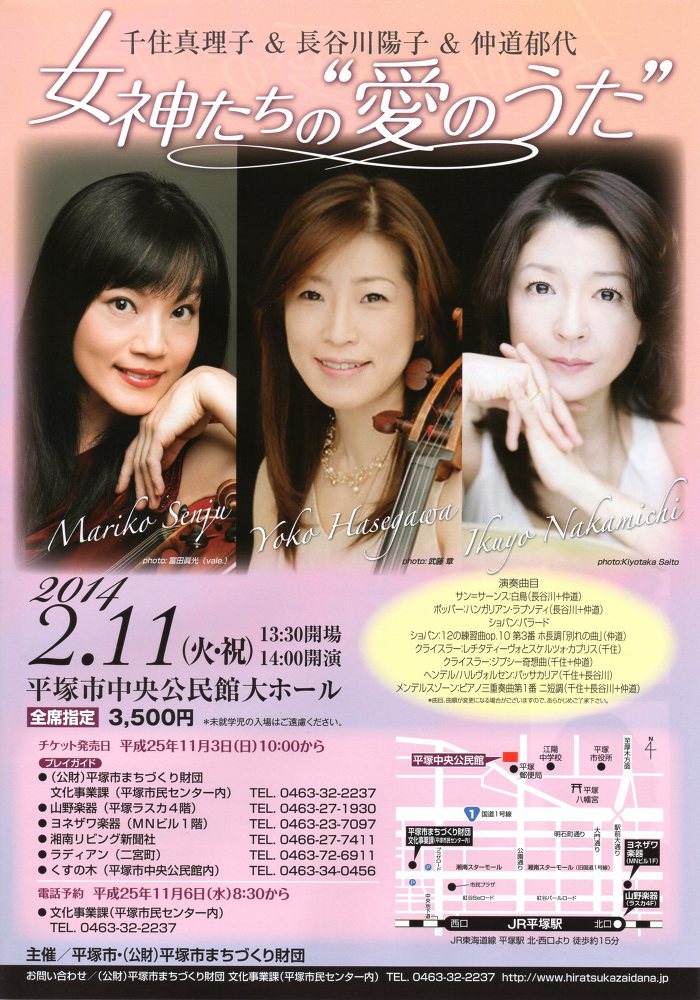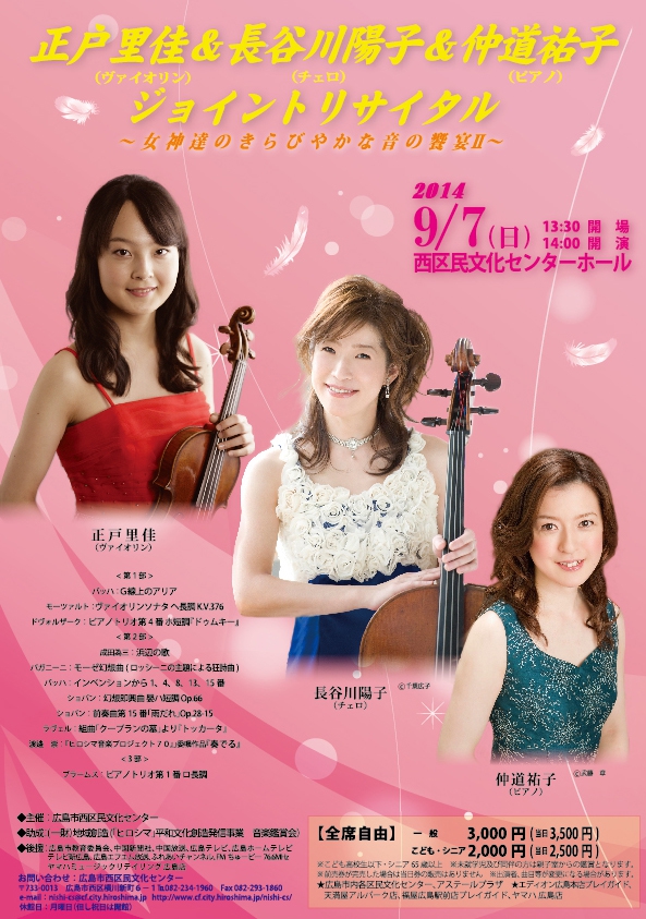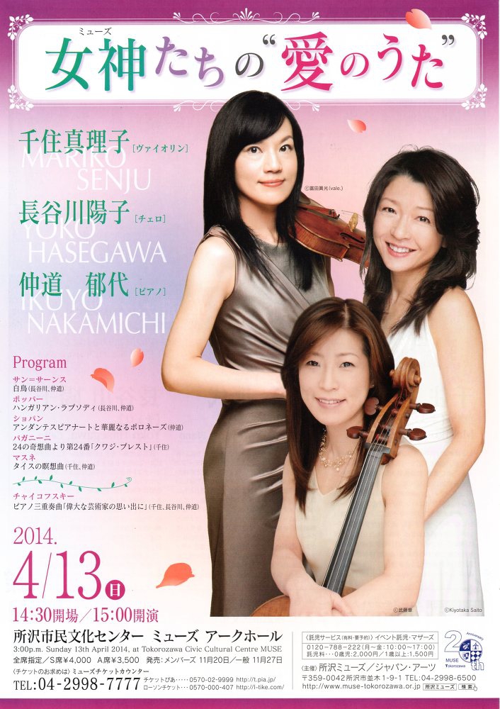 【出演】Vn 千住真理子 Vc 長谷川陽子 Pf 仲道郁代