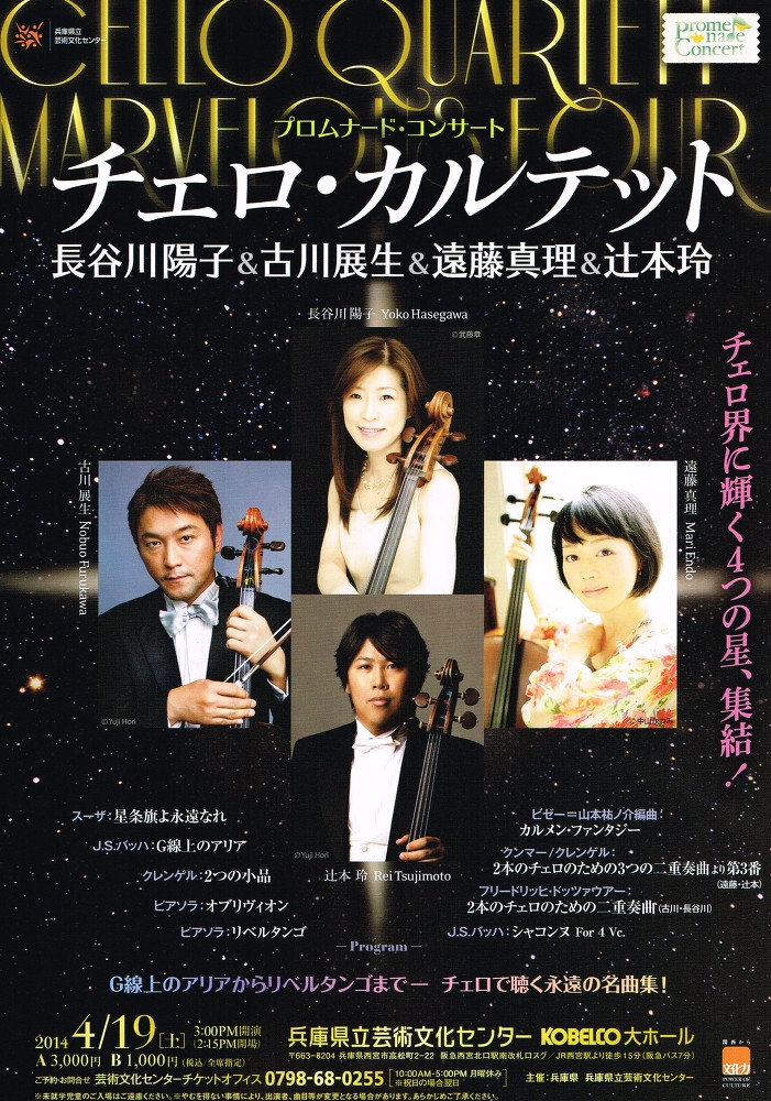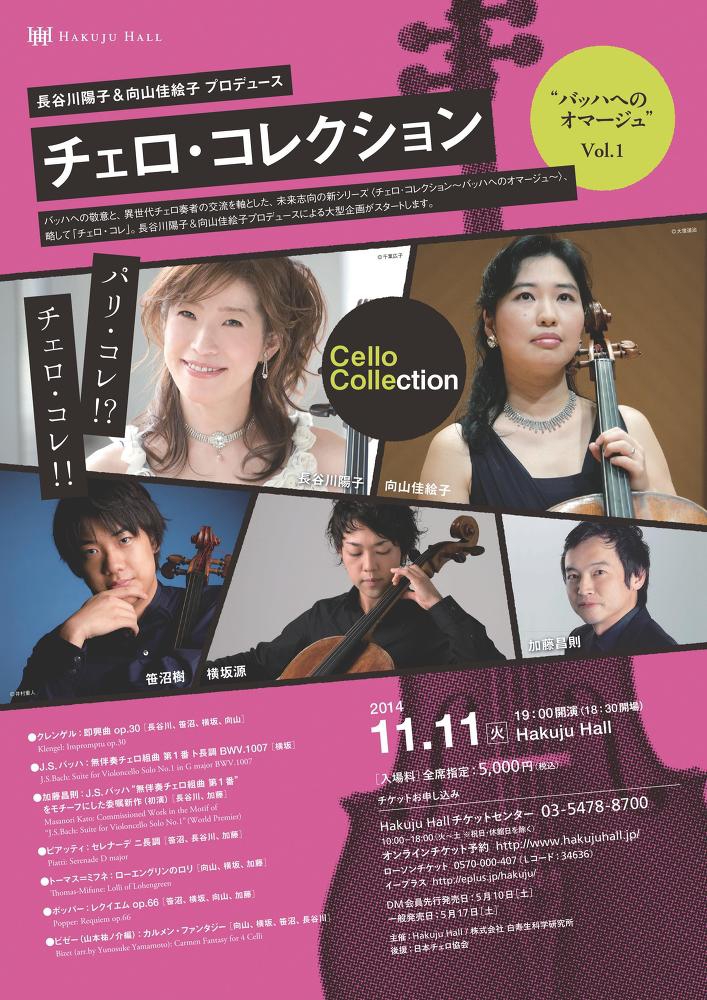 【出演】長谷川陽子、向山佳絵子、横坂源、笹沼樹 (以上、チェロ)
