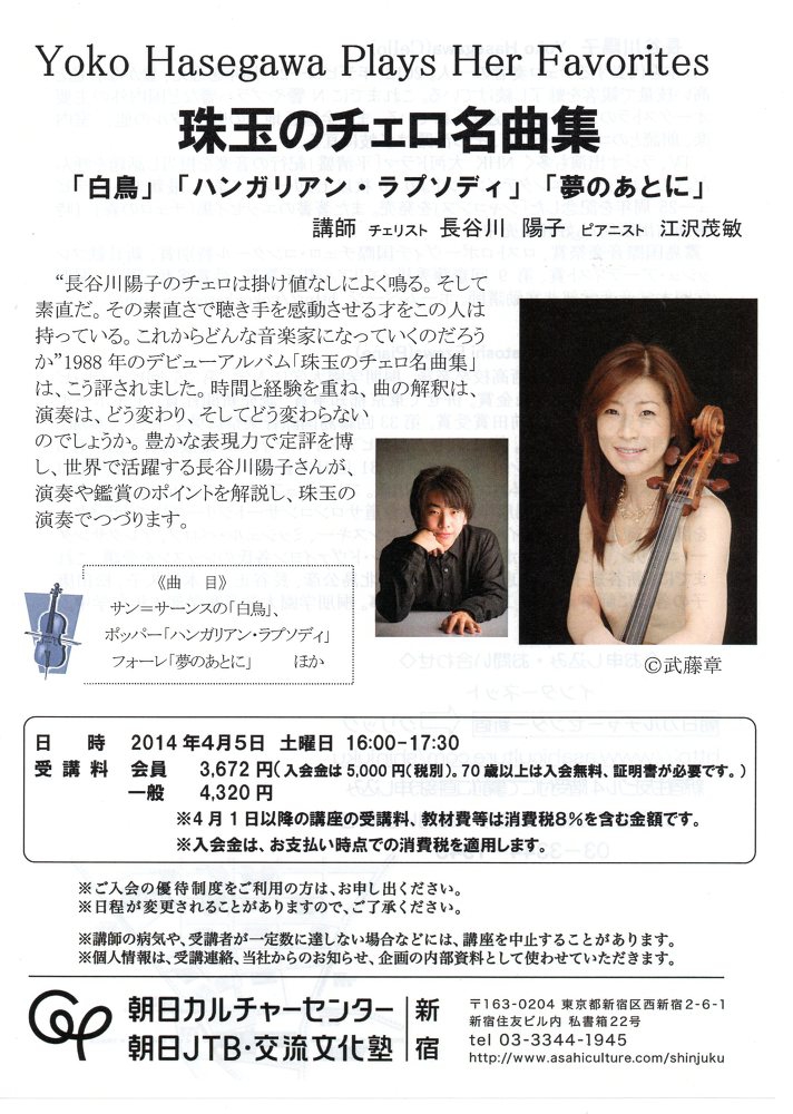 【主催 問合せ先】日本チェロ協会 03-3505-1991