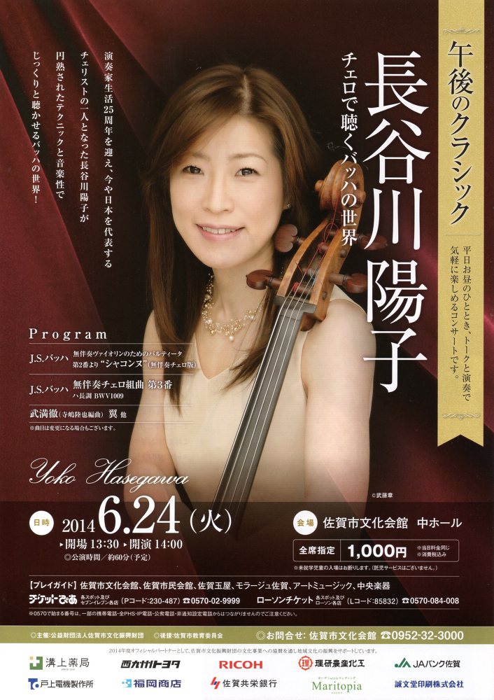 【出演】長谷川陽子(チェロ)、須関裕子(ピアノ)