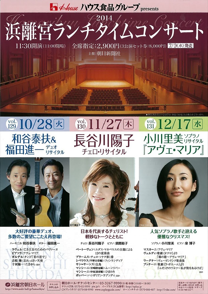【申込】朝日ホール チケットセンター 03-3267-9990 【発売日】7月9日