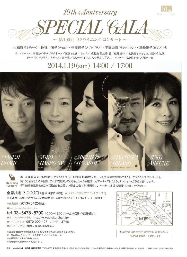 【申込】Hakuju Hall チケットセンター 03-5478-8700 (10:00~18:00 火~土)