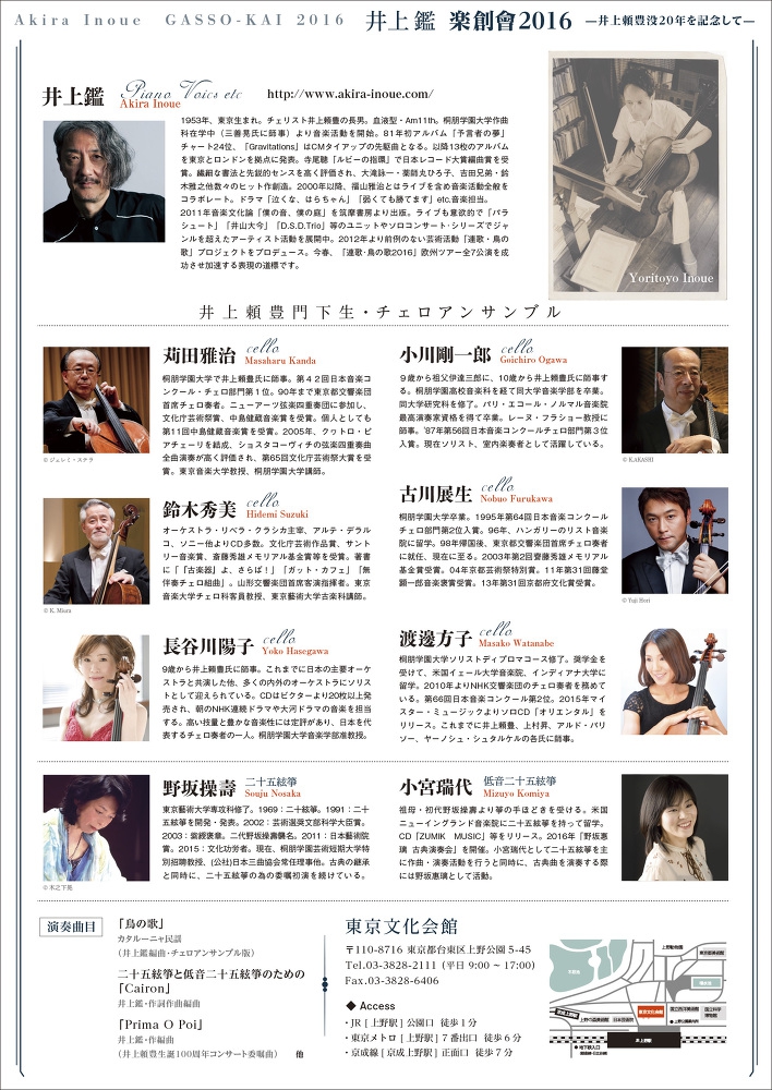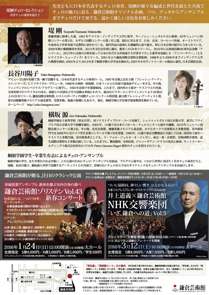 【出演】(チェロ) 堤剛 長谷川陽子 横坂源