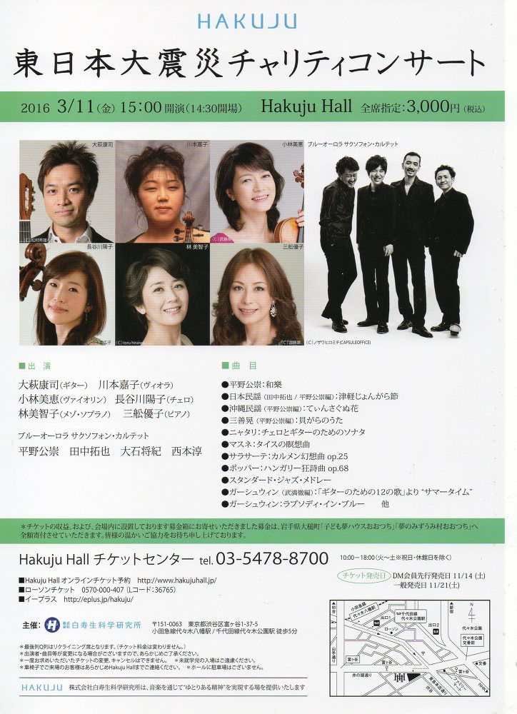 【申込】Hakuju Hall チケットセンター 03-5478-8700