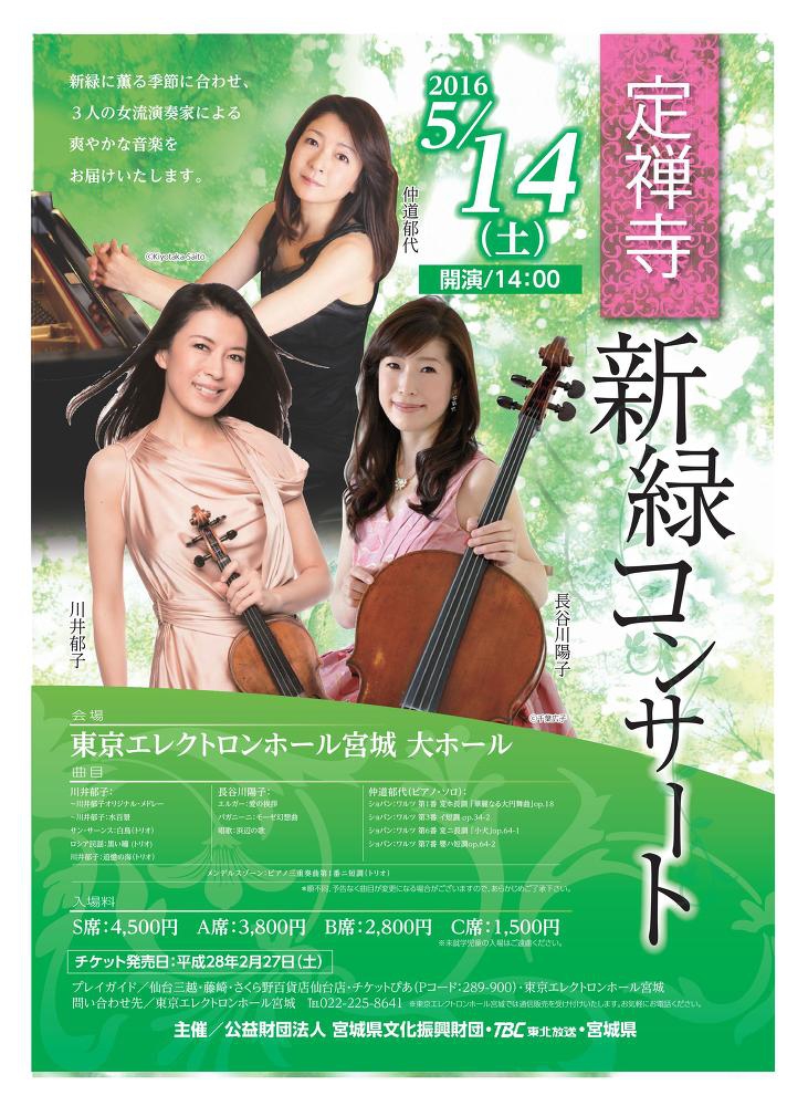 【出演】長谷川陽子(チェロ)、水谷川優子(チェロ)、仲道祐子(ピアノ)