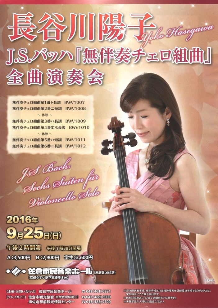 【曲目】バッハ 無伴奏チェロ組曲4、5、6番