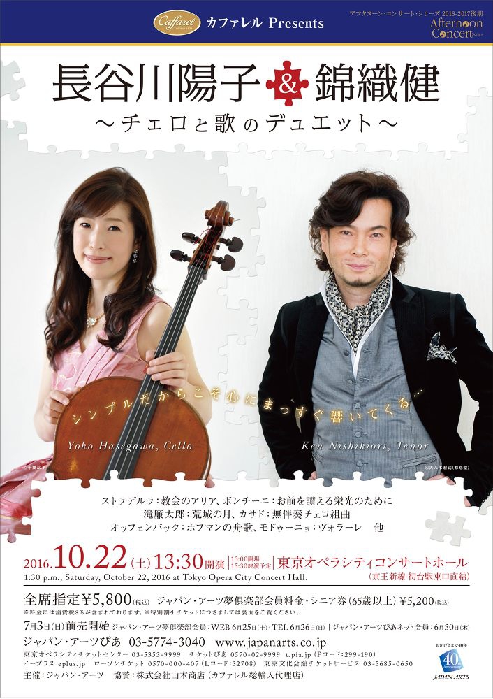 【出演】長谷川陽子(チェロ) 錦織健(テノール)