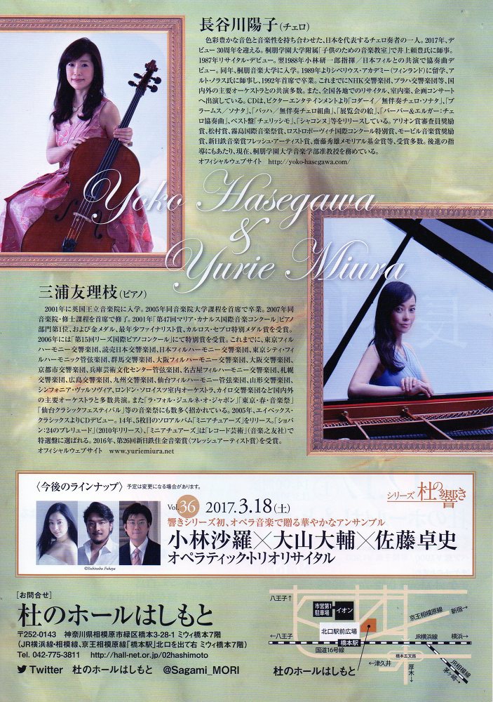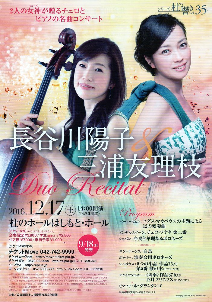 【出演】長谷川陽子 (チェロ) 三浦友理枝 (ピアノ)