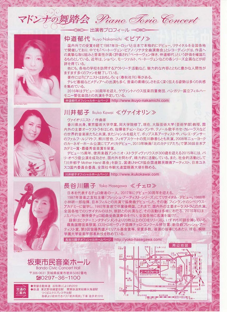 【出演】千住真理子(ヴァイオリン) 長谷川陽子(チェロ) 仲道郁代(ピアノ)