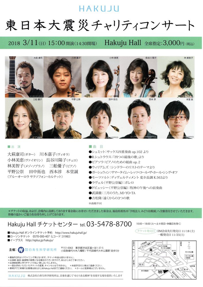 【申込】Hakuju Hall チケットセンター 03-5478-8700 発売中