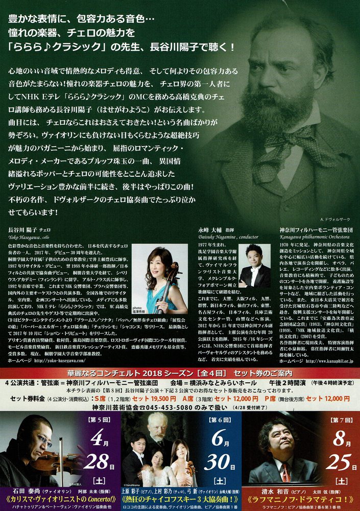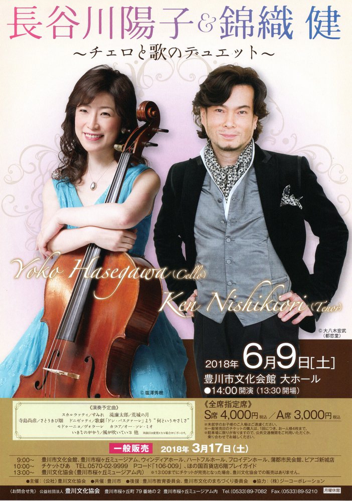 【出演】長谷川陽子(チェロ)、錦織健(テノール)