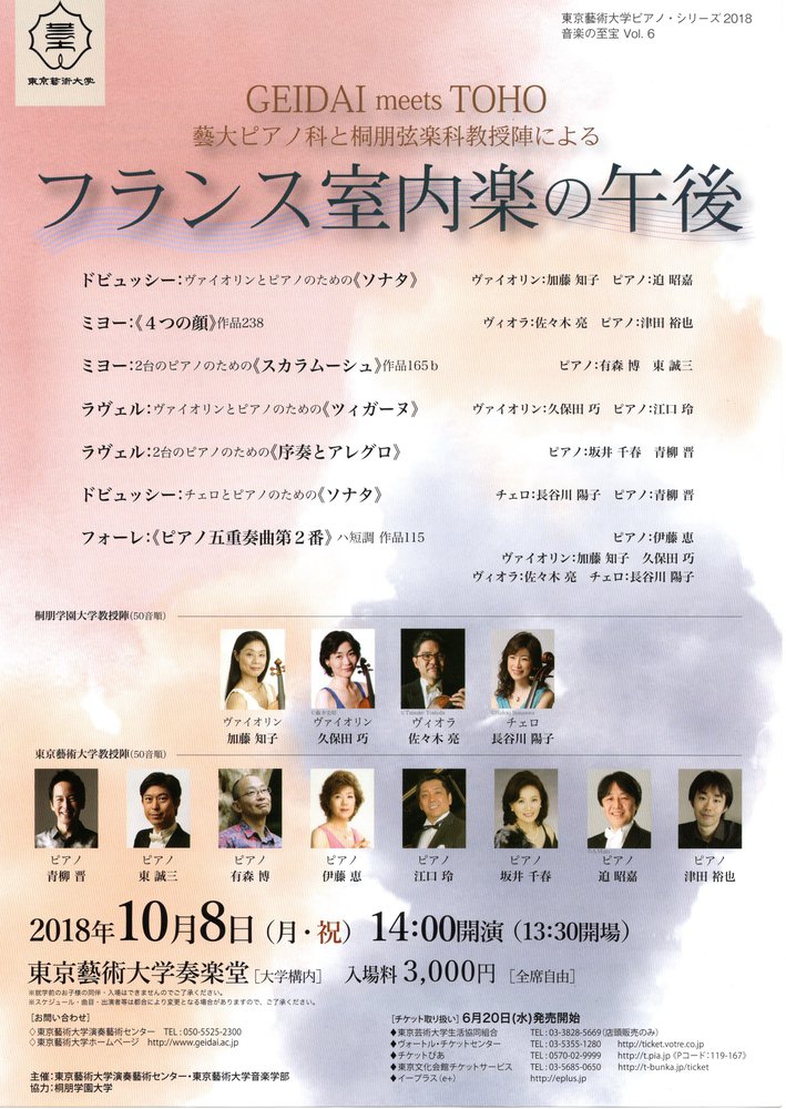 【問合】東京藝術大学演奏藝術センター 050-5525-2300 全席自由 3,000円