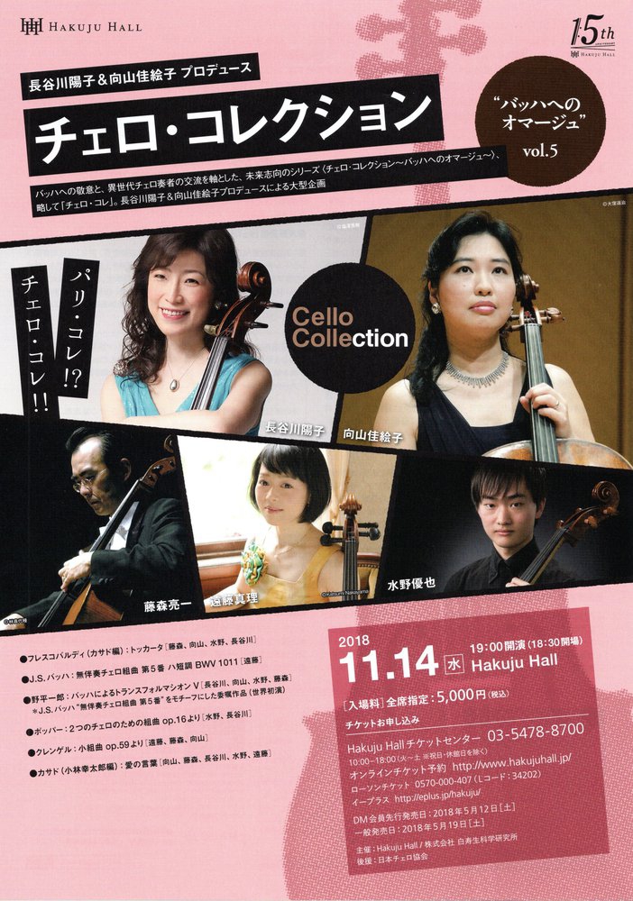 【主催】Hakuju Hall (後援:日本チェロ協会)