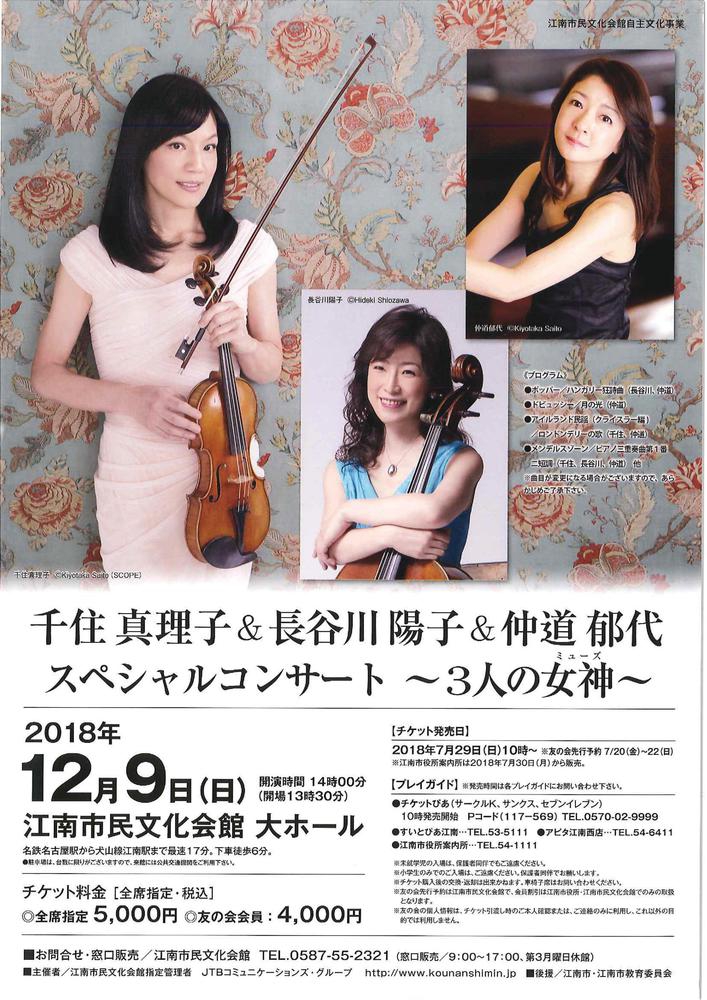 【出演】千住真理子(ヴァイオリン)・長谷川陽子(チェロ)・仲道郁代(ピアノ)