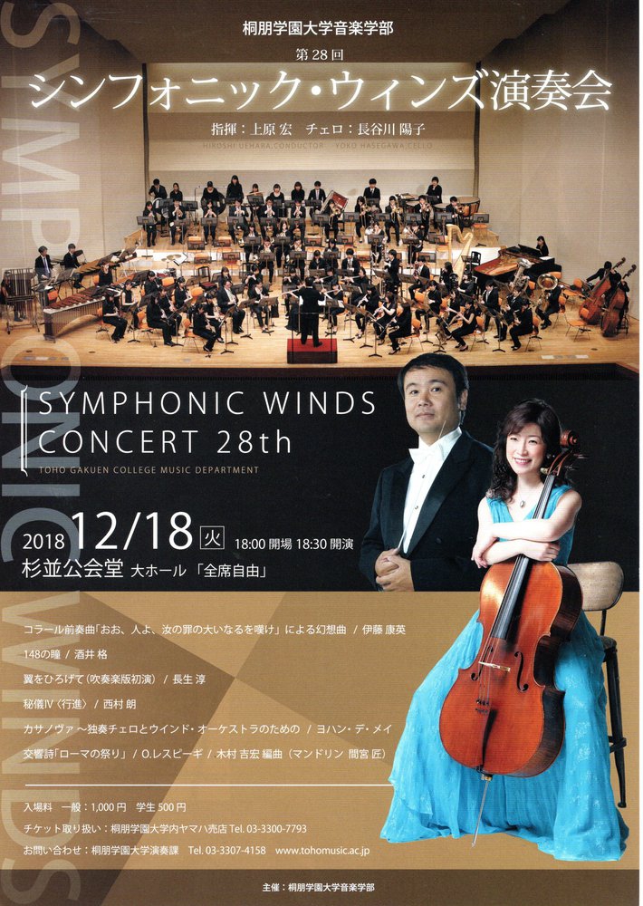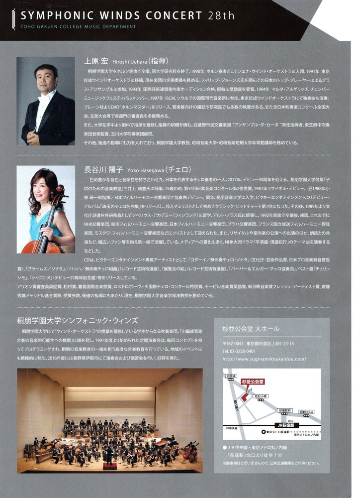 【出演】長谷川陽子(チェロ)、桐朋学園大学音楽科 管・打楽器専攻生