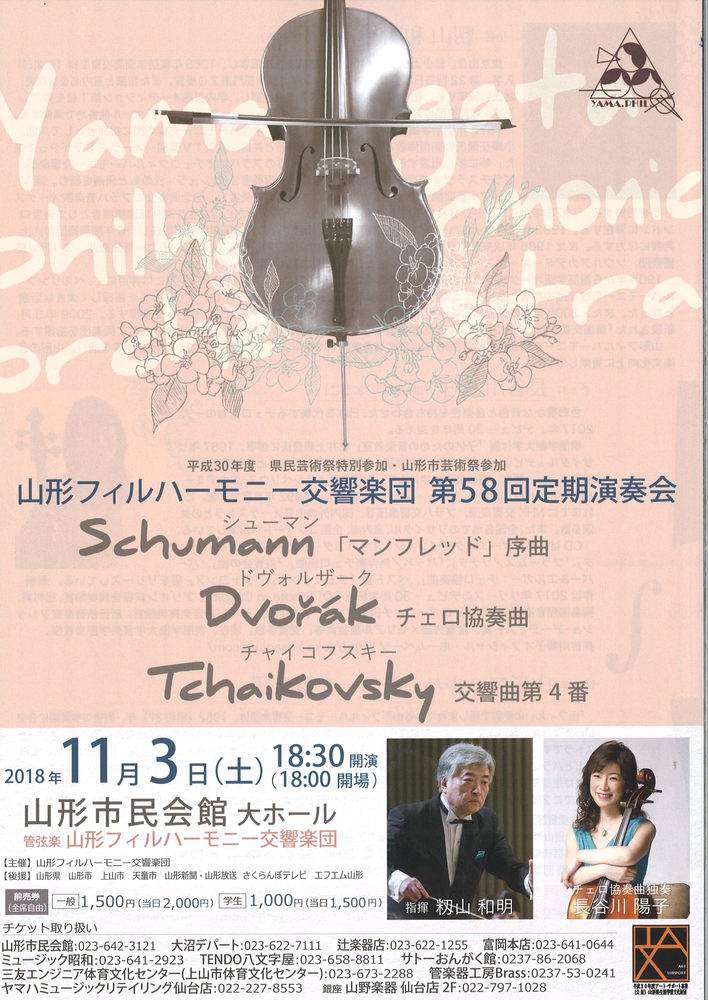 【出演】指揮:籾山和明 チェロ:長谷川陽子 山形フィルハーモニー交響楽団